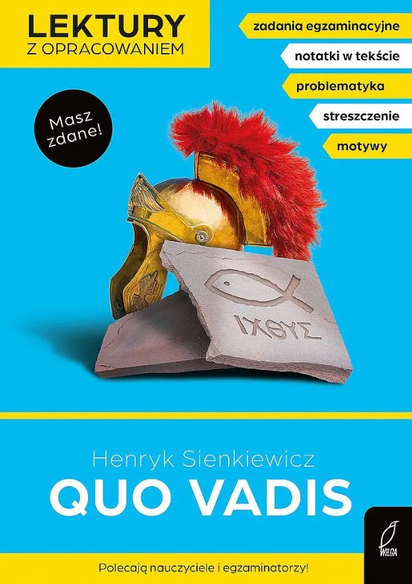 „Quo vadis” to książka napisana przez Henryka Sienkiewicza. Jest to powieść historyczna, która opowiada o czasach starożytnego Rzymu, kiedy panował cesarz Neron. Czytałem ją w tym roku szkolnym i mi się spodobała, chociaż zawiera ponad 400 stron w różnych wydaniach. • Głównymi bohaterami są Marek Winicjusz i Ligia. Marek to rzymski żołnierz i bogaty patrycjusz, który zakochuje się w Ligi – chrześcijance, która została wychowana w rzymskim domu. Ich miłość jest trudna, bo on jest pogańskim rzymianinem, a ona chrześcijanką. A chrześcijaństwo to jest nowa religia w tam tych czasach i często o nich mówią, że są źli i okrutni. Mimo to, Marek bardzo się zmienia pod wpływem Ligii i jej religii. Z człowieka egoistycznego staje się dobry i gotowy poświęcić wszystko dla Ligii. • W książce pojawia się też wiele innych ciekawych postaci. Bardzo zapamiętałem Nerona – cesarza, który był okrutny, egoistyczny i myślał tylko o sobie. On kazał spalić Rzym, a winę zrzucił na chrześcijan, przez co wielu z nich zostało zabitych. Z drugiej strony byli ludzie dobrzy i wierzący, tacy jak apostoł Piotr i Paweł z Tarsu, którzy dawali innym nadzieję i chrześcijaństwo. • Podobało mi się to, że historia kończy się dobrze - Neron ginie, a Winicjusz i Ligia szczęśliwie żyją razem w miłości i też to, jak autor opisał starożytny Rzym. • Moim zdaniem „Quo vadis” to bardzo ciekawa książka, choć za długa. Uważam, że warto ją przeczytać, szczególnie osobom, które lubią książki historyczne, o starożytności, starożytnym Rzymie i o miłości. Mi się spodobała i mimo że była bardzo długa, to warto było ją przeczytać. Jedyny problem tej książki jest taki, że po prostu jest za długa, a ja nie lubię czytać takie długie książki, lecz mi się spodobała.